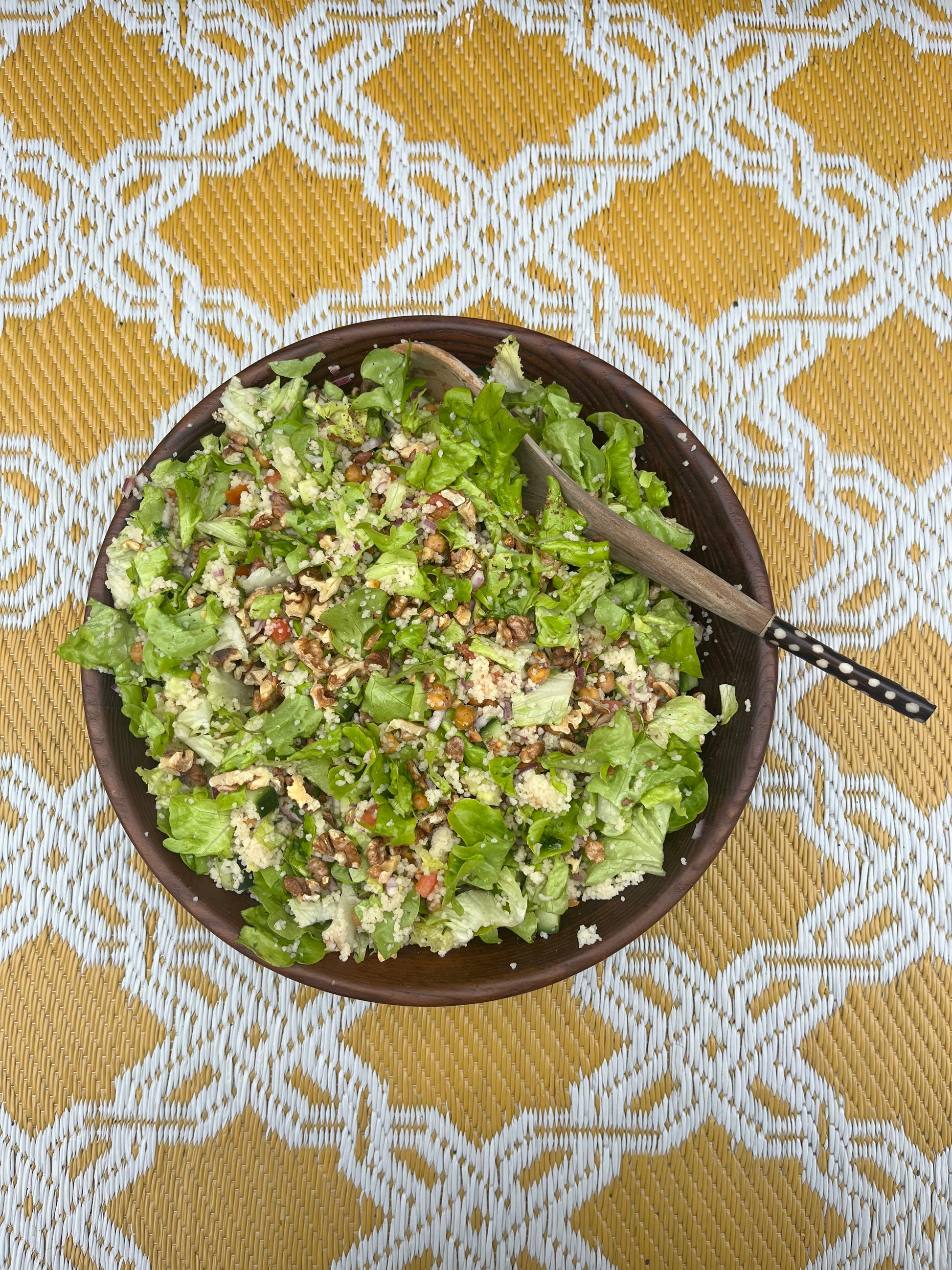 This salad is full of colour, flavour and good nutrients. You get a zingy dressing, crunchy walnuts and a nice balance of carbs and protein. A total stunner for your table that will leave you satisfied.